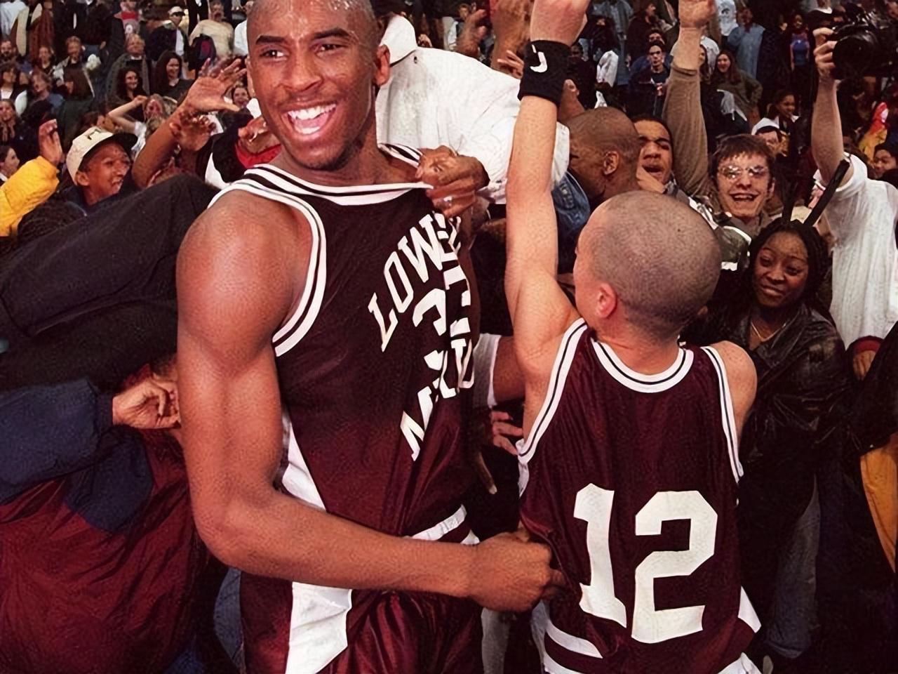 首先,我们先回到科比参加选秀之前,也就是他高中的最后一个赛季,看看他的表现究竟如何。尽管当时的科比才17岁,但却已经展现出了极为成熟的球风,同时打法也是非常飘逸,让球迷们大呼过瘾。再看看他的数据,场均30.8分、12个篮板、6.5次助攻、4次抢断和3.8次盖帽,这无论是放在哪个时代,都是相当恐怖的数据了,甚至在如今这个信息更为发达,同时对高中生没有那么大偏见的时代,恐怕直接能够成为状元的热门。而在他的率领之下,劳尔梅里恩高中也是一度打出了恐怖的27连胜,最终捧起了学校53年以来的第一座宾夕法尼亚州的冠军。与此同时,高中毕业的科比也是将自己的得分定格在了2883分,打破了由“大北斗”威尔特·张伯伦保持了多年的总得分记录。